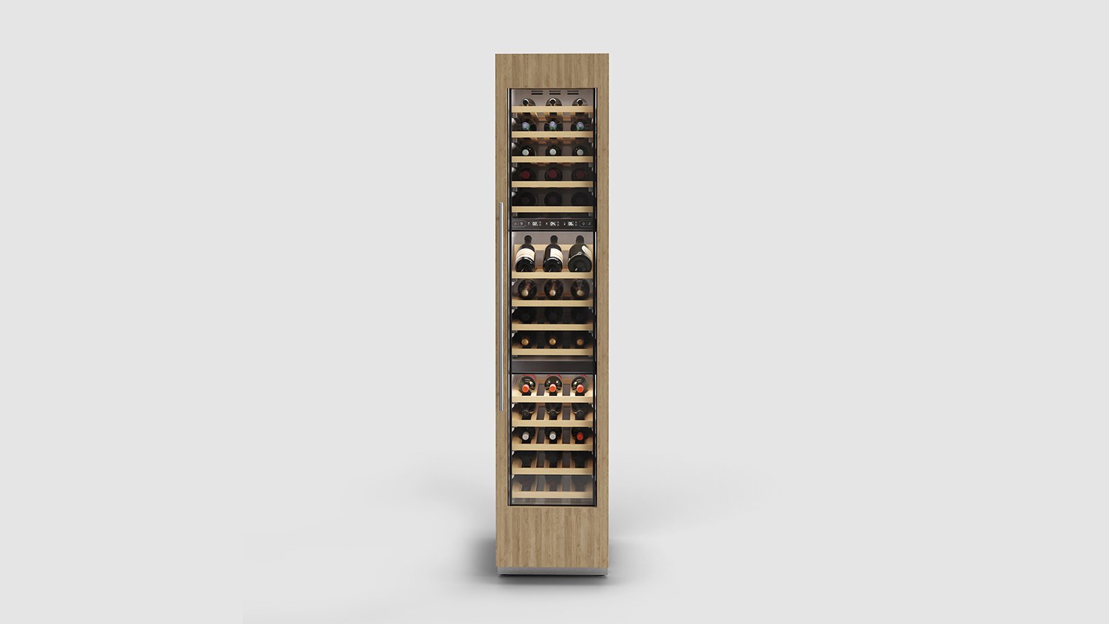 Our 18”W / 84”H Tri-Zone Built-In Wine Cooler with a generous 255L capacity and space for up to 68 bottles is crafted for true connoisseurs. Featuring fully integrated panel-ready installation, it blends seamlessly into your kitchen or bar with timeless elegance.